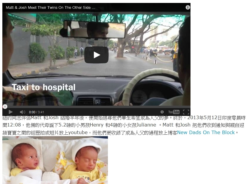 A big thanks also to Joe.My.God for posting the video of us meeting the twins for the very first time, leading to Buzzfeed writing a story about us (which, as of this moment, has been seen more than 75,000 times, shared 180+ times on Facebook, and liked 800+ times on Facebook). china blog new dads on the blogGreat blogs like Boy Culture and Queerty also wrote about our baby adventures, along with TheGailyGrind, as well as a radio station in Australia, and even blogs from as far away as China (screenshot at right), France, Israel and the Netherlands. We’re just completely blown away by the response. Never did we imagine our story would get picked up like this.