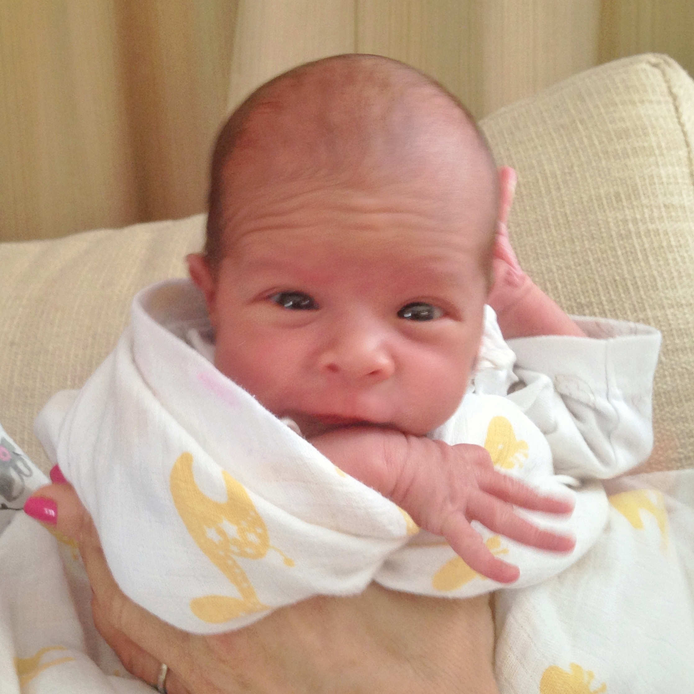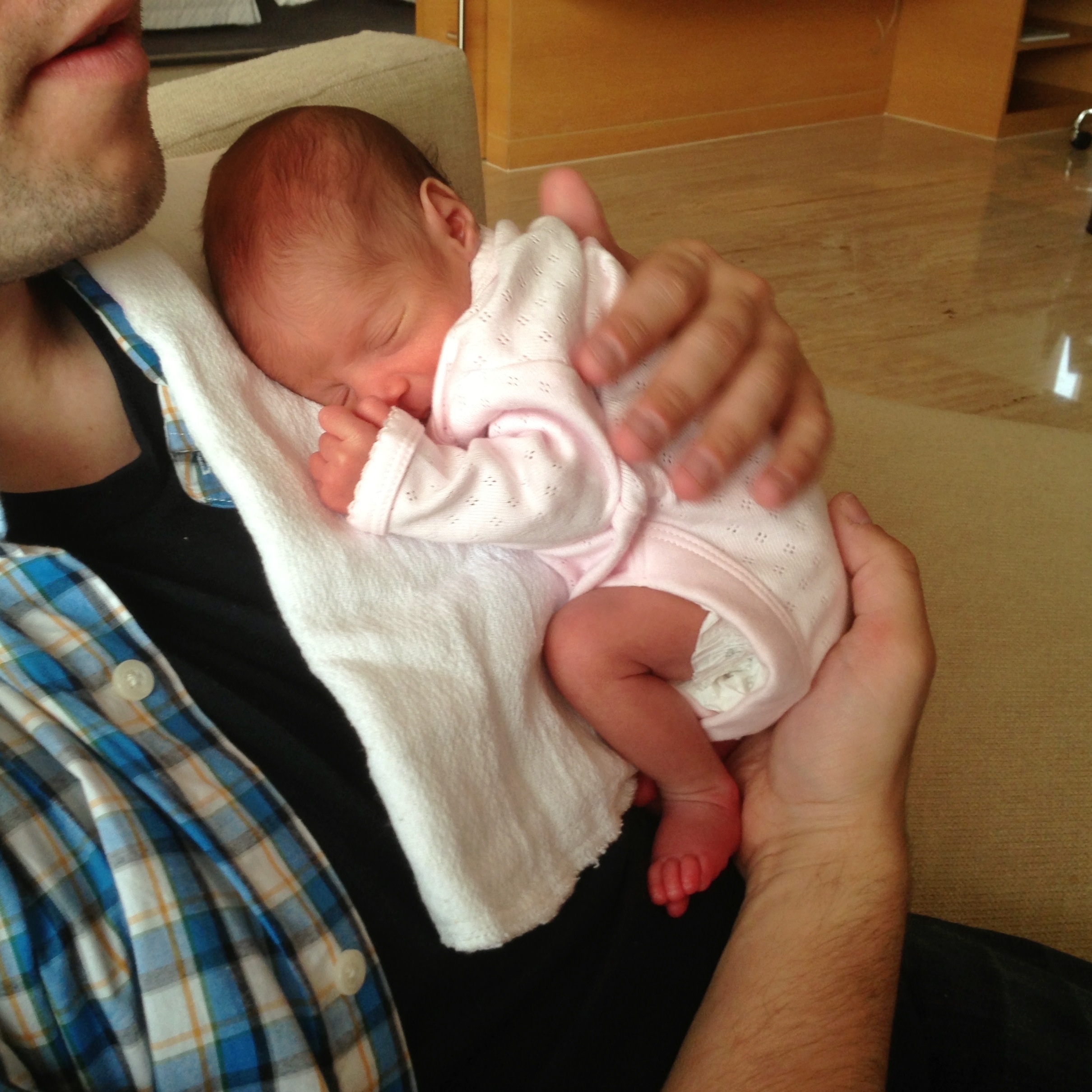 I got to hold Julianne for a while, too (so tiny! so many facial expressions!), and then we changed their diapers for the first time. We got them into some of the Carter’s half-onesies we brought (the kind that leave room for their still-healing umbilical cords), and swaddled them in the super soft, really cute Aden and Anais blankets we got at our baby shower.