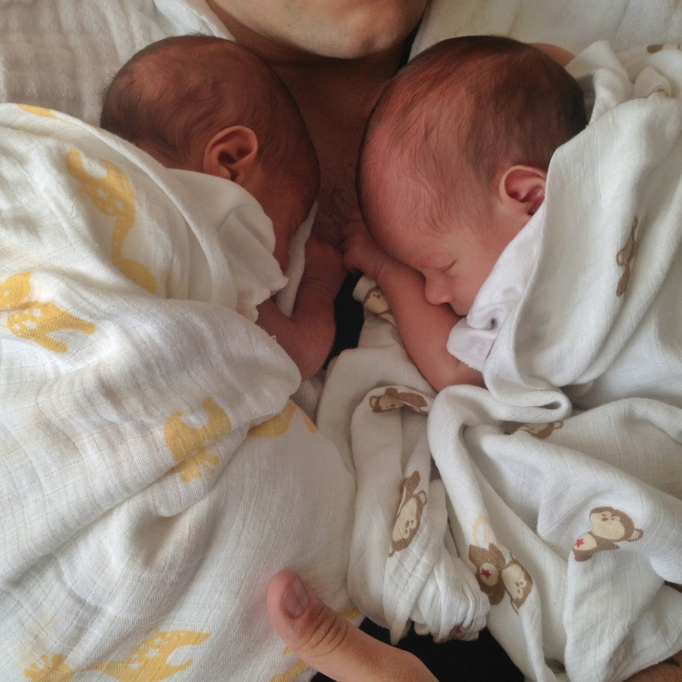 Until then, more feeding, more swaddling, more sponge baths, more cuddling, more kisses, more tears wiped away, and many, many more naps. (They’re still sleeping the vast majority of the time.)