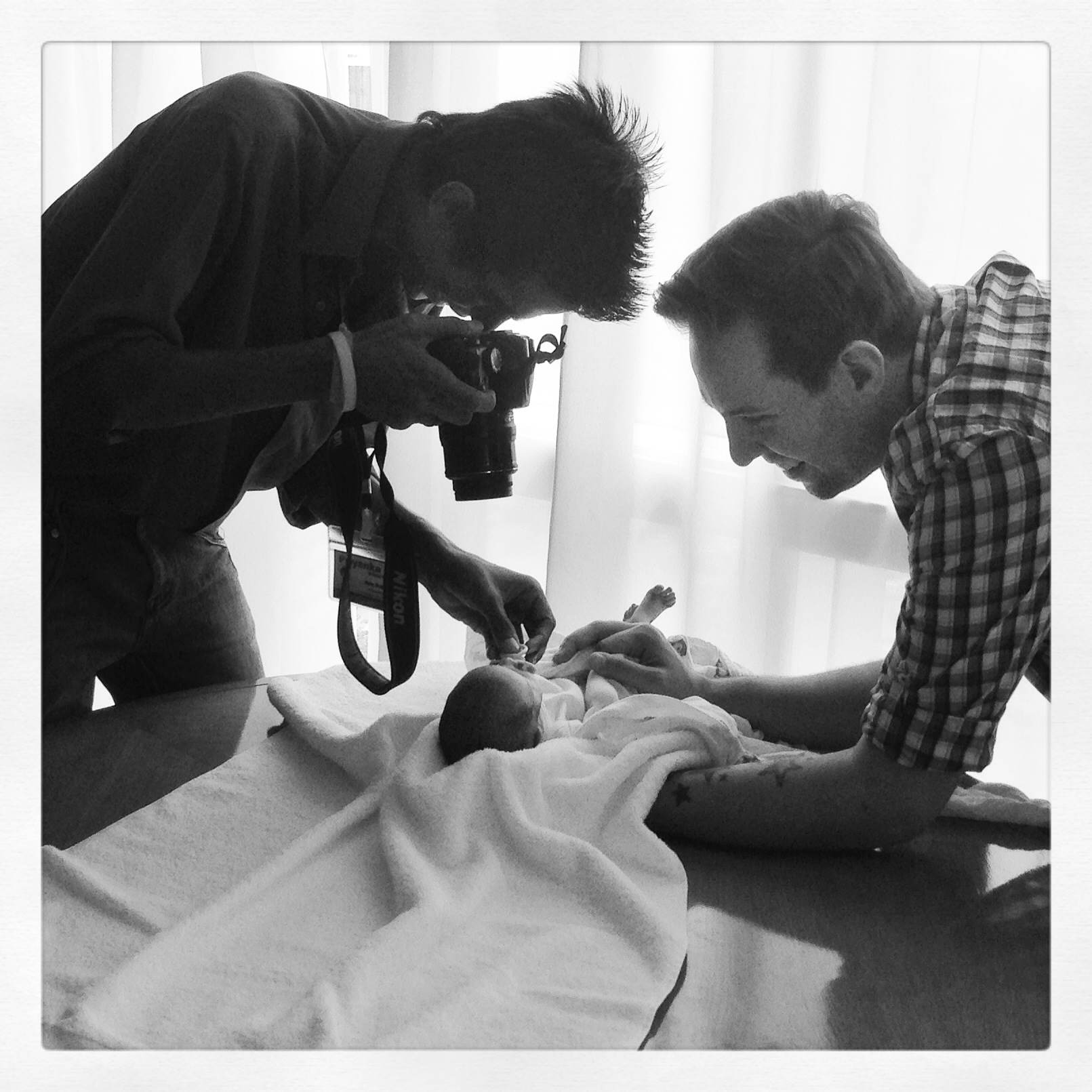 Henry and Julianne were doing lots of sleeping when they first arrived, so the three of us basically stared and cooed and generally were puddles while watching them snooze after they were rolled into the room. We did some gentle poking and prodding, trying not to wake them, but so curious and excited about those little swaddled beings.